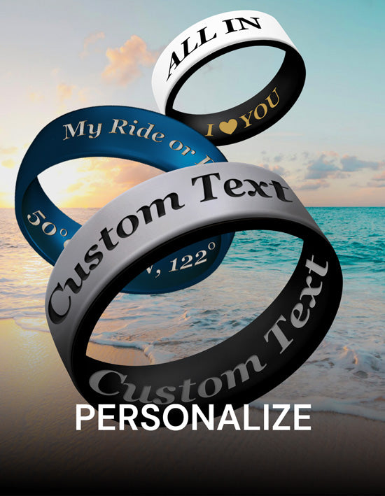 We pioneered silicone ring engraving, so you get the best custom ring with us. Make it extra meaningful with dates, nicknames, and more.