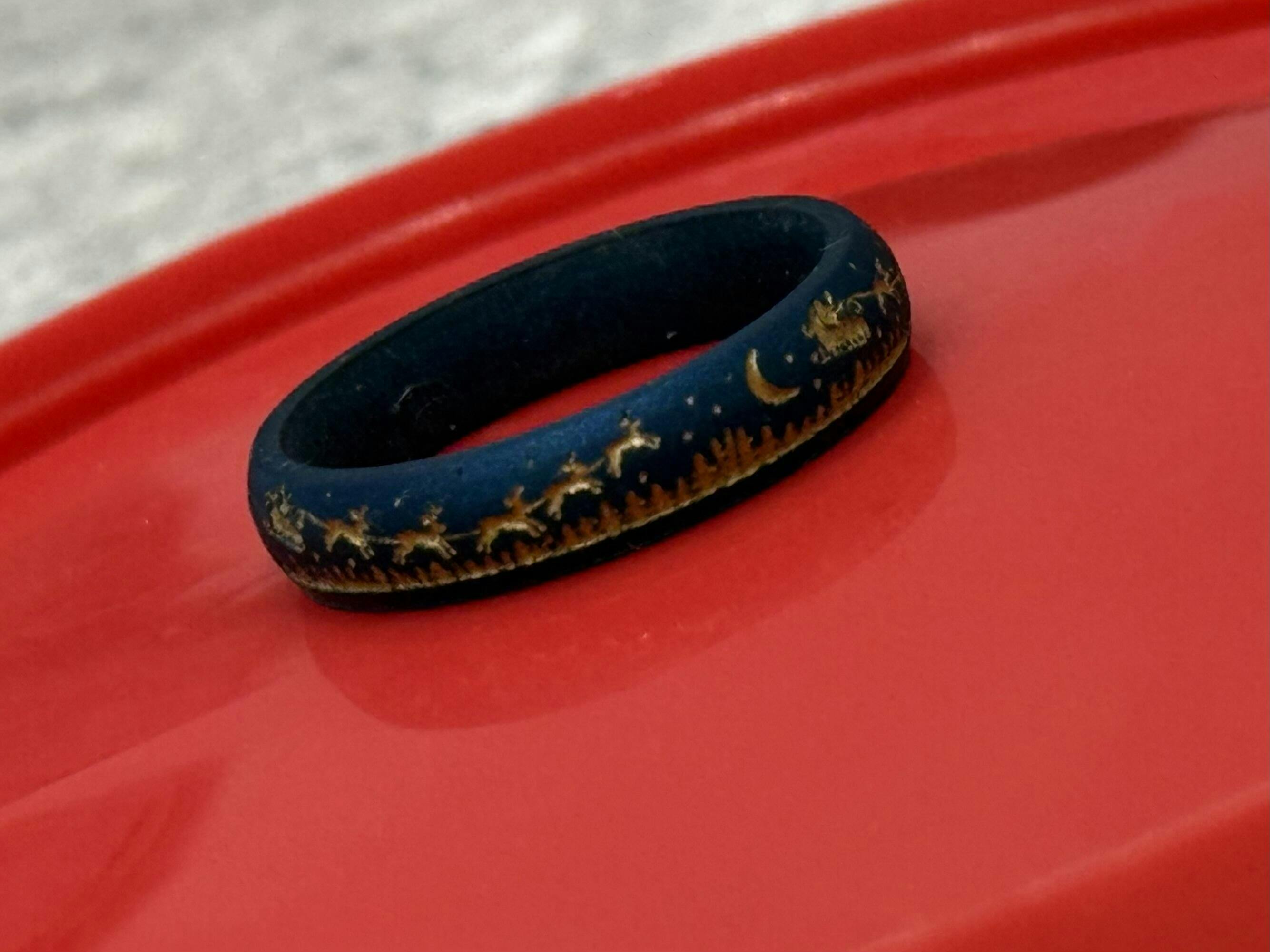 Gold Santa's Reindeer Sleigh Silicone Ring on Arc 4mm