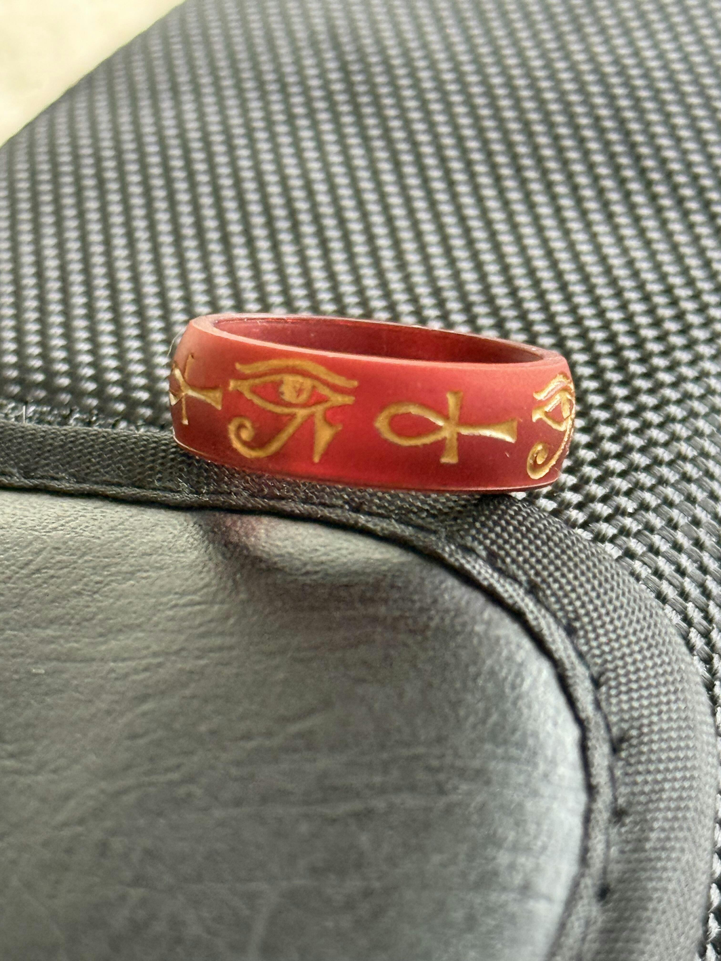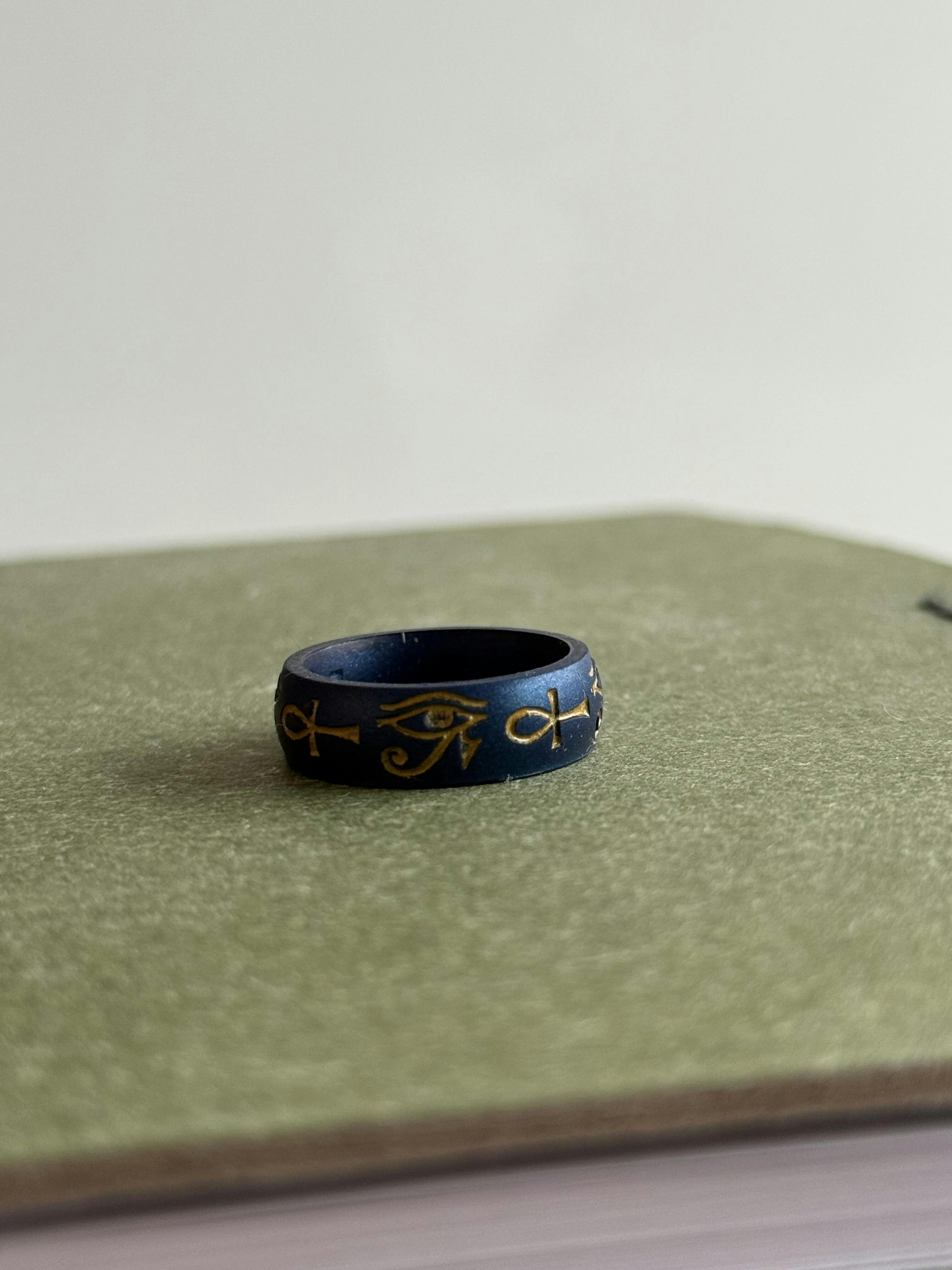 Gold Eye of Horus & Ankh Silicone Ring on Arc 6mm