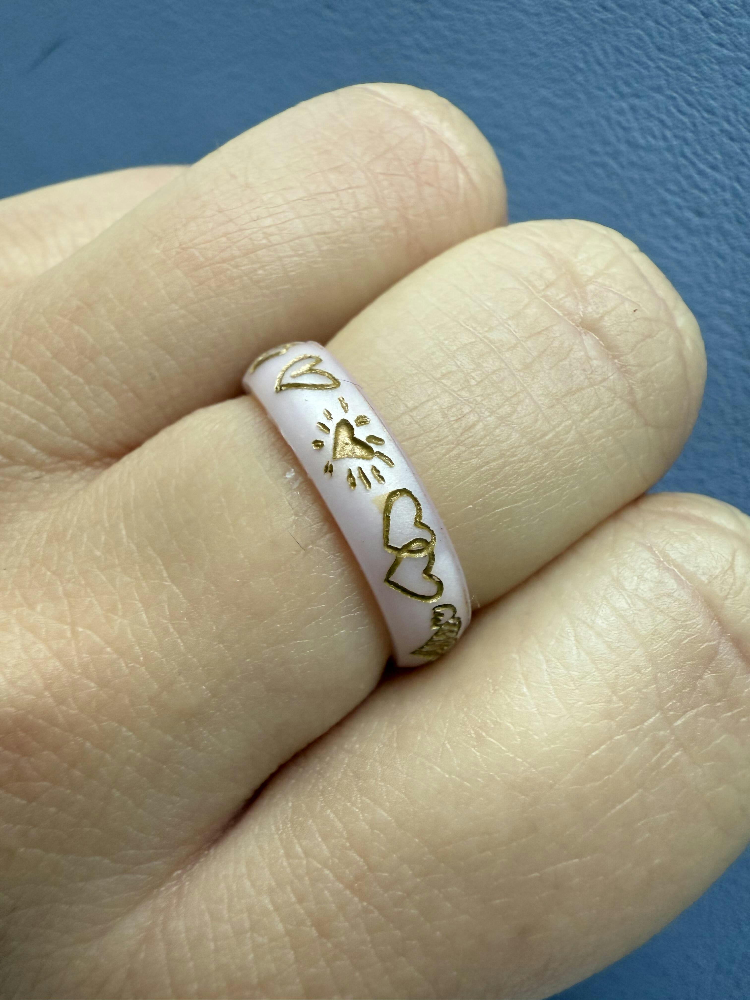 The shimmering silver inlay adds an elegant touch, highlighting the playful yet meaningful design. Made from soft, hypoallergenic silicone, it’s lightweight, durable, and designed for all-day comfort—perfect as a gift for your soulmate, your best friend, or yourself.