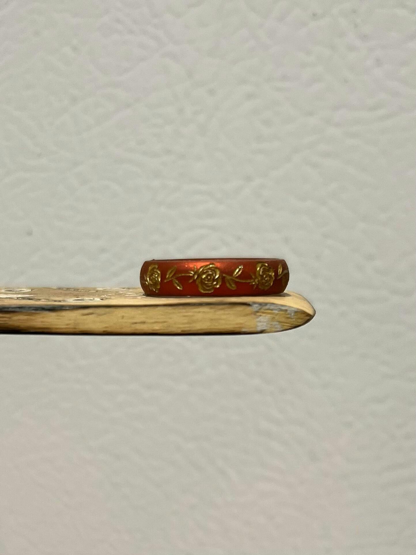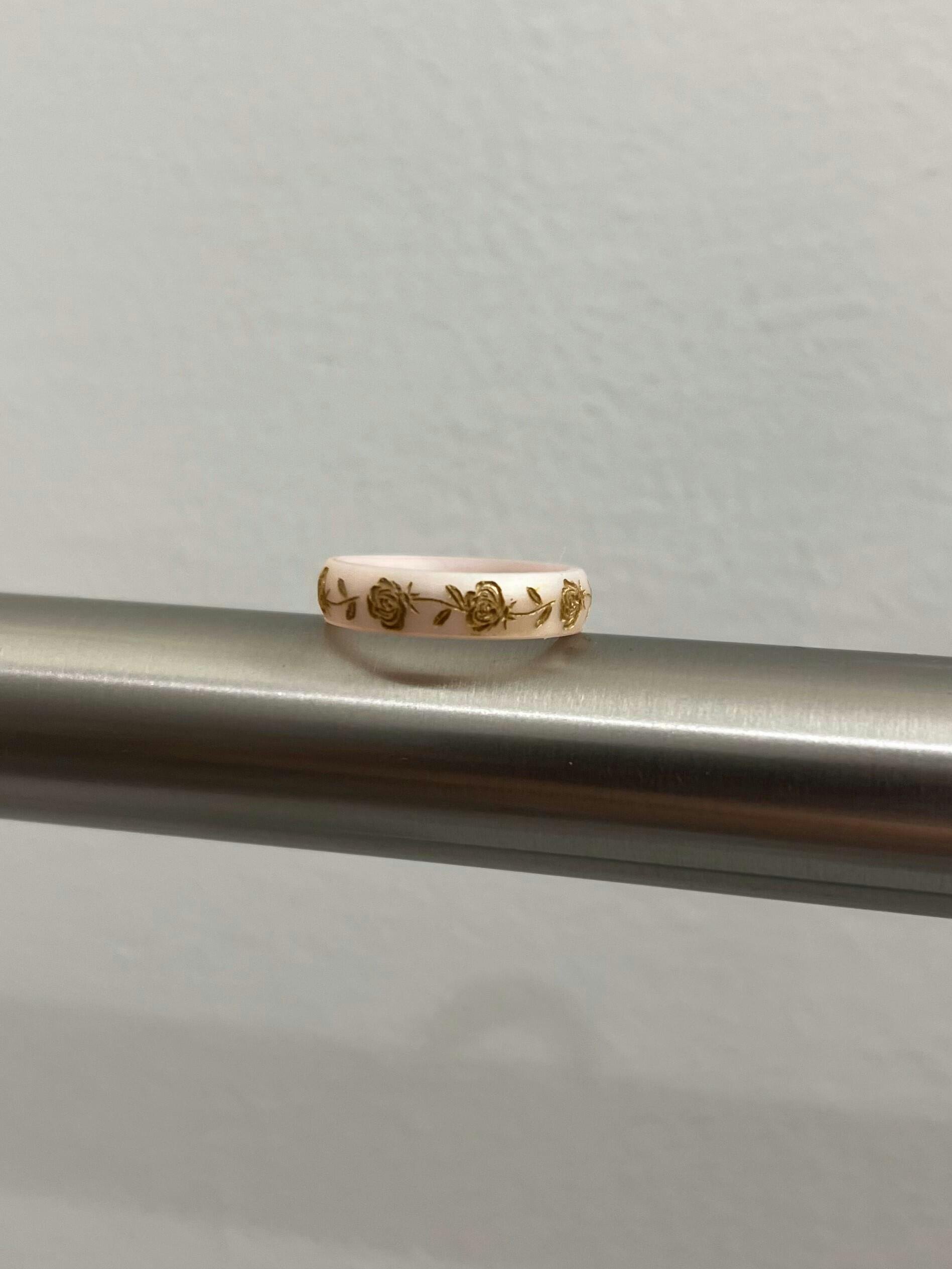 Gold Rose Silicone Ring, June Birth Flower on Arc 4mm