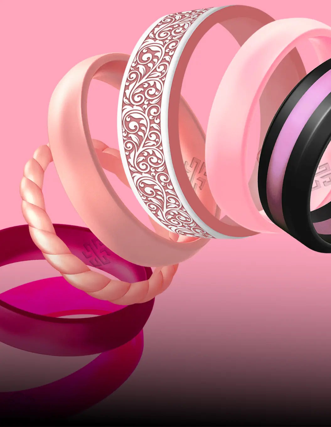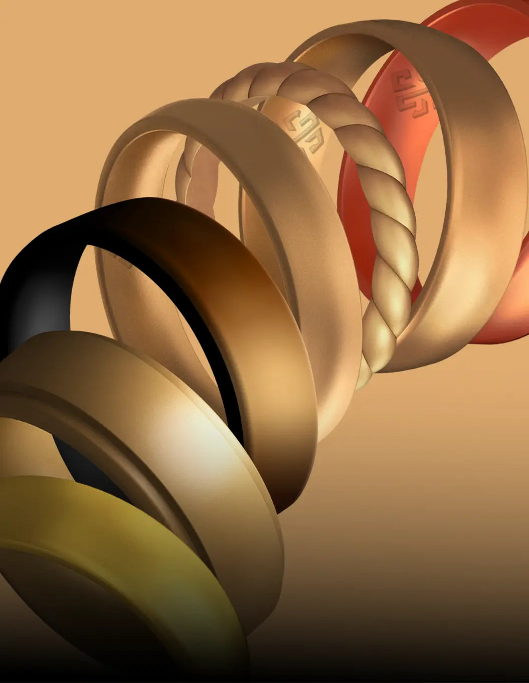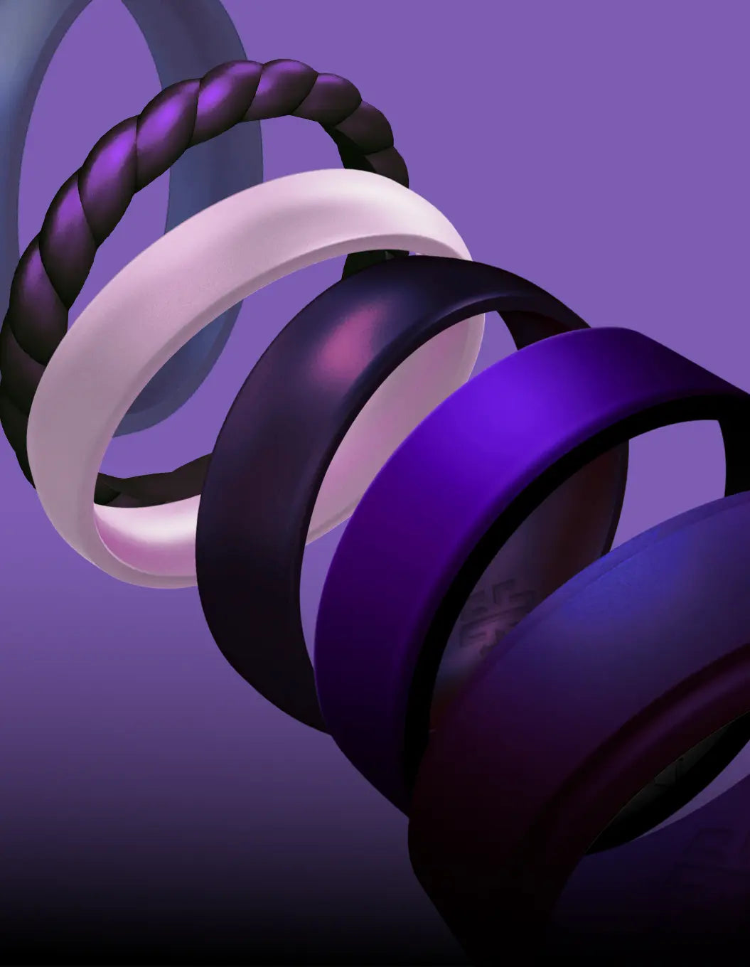 Discover the largest and most vibrant color selection of silicone rings, made with long-lasting, vivid, and metal-free pigments.