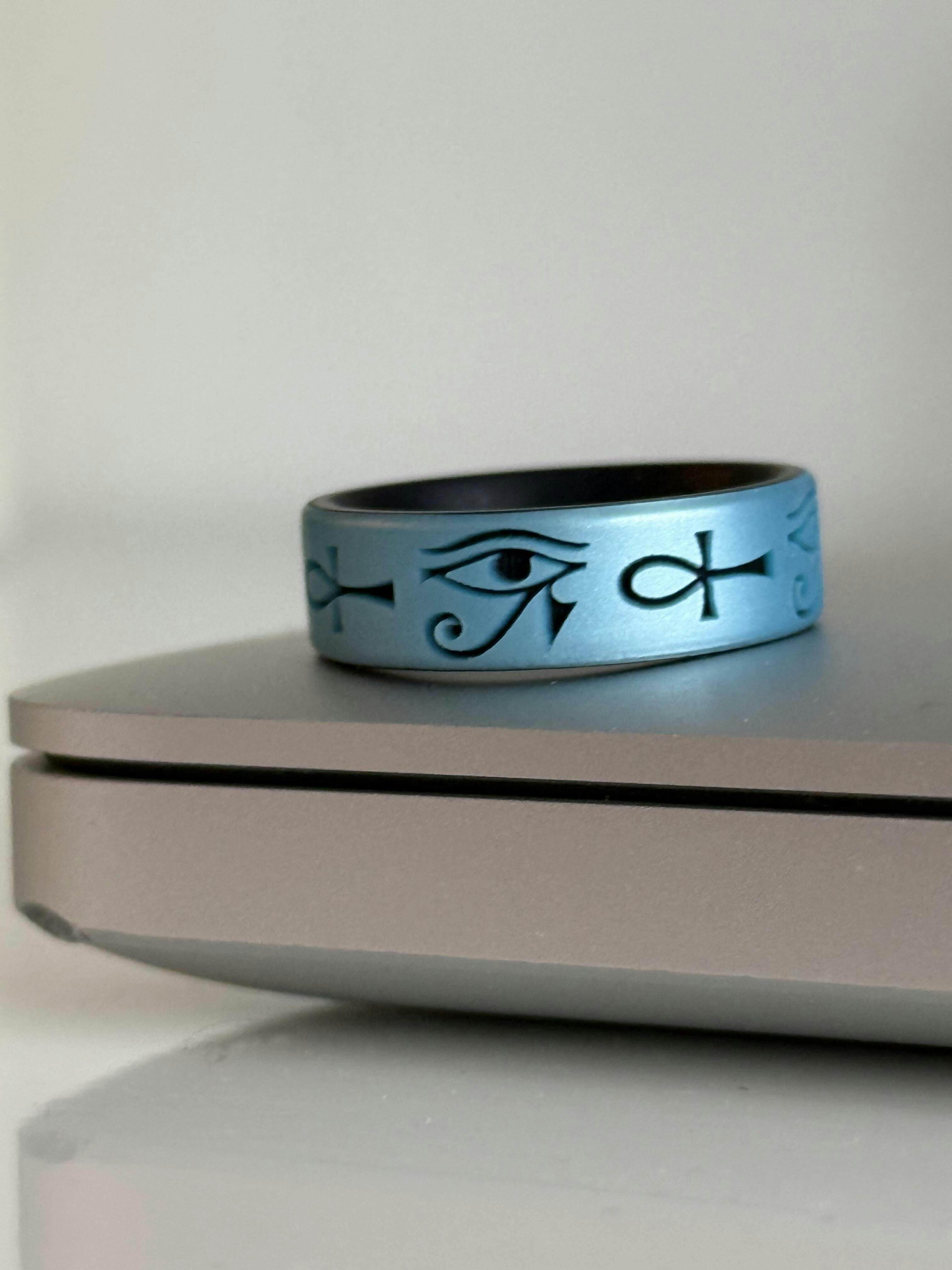 Eye of Horus & Ankh Silicone Ring on Dual Layer 6mm