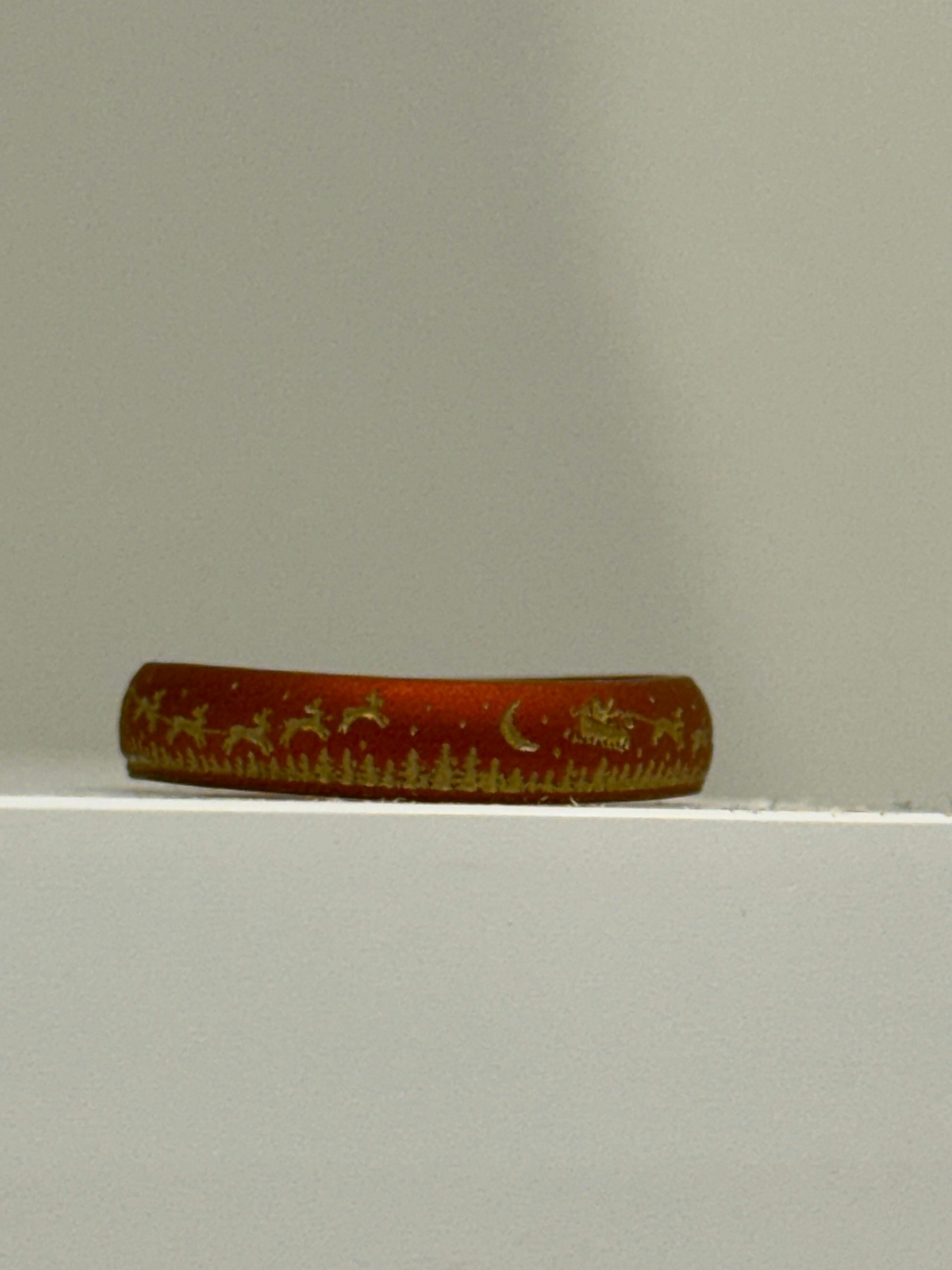 Gold Santa's Reindeer Sleigh Silicone Ring on Arc 4mm