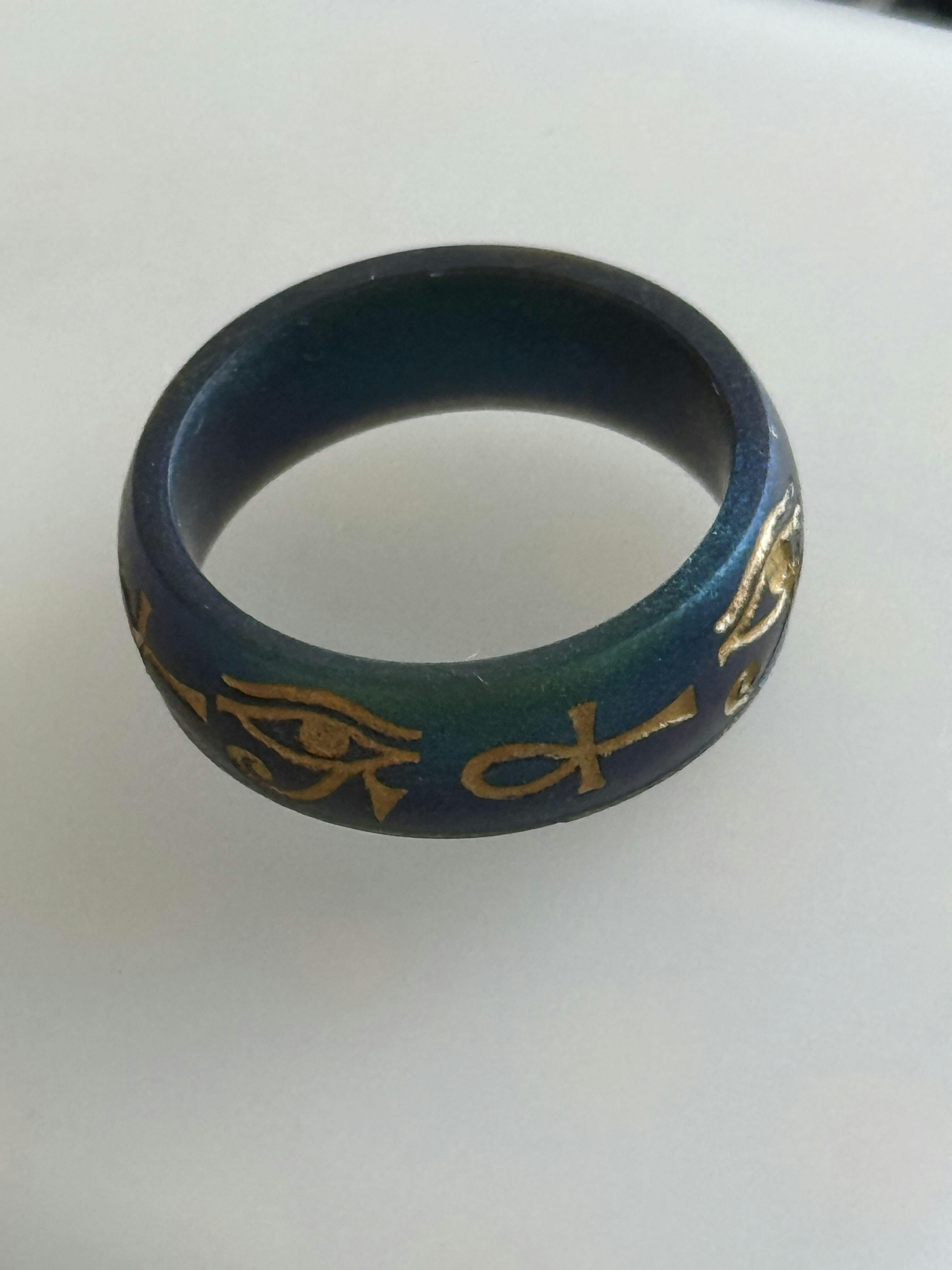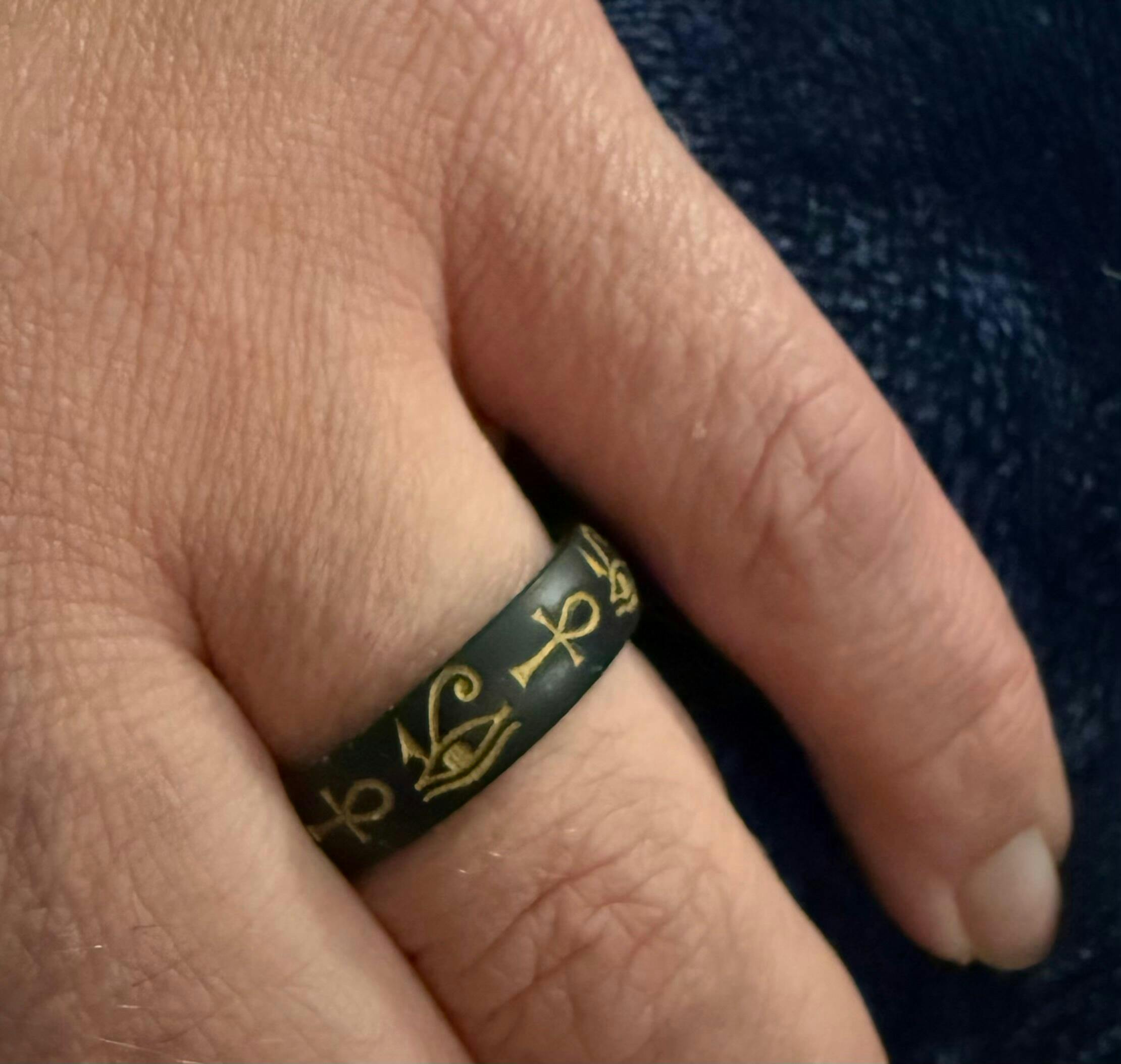 Gold Eye of Horus & Ankh Silicone Ring on Arc 6mm
