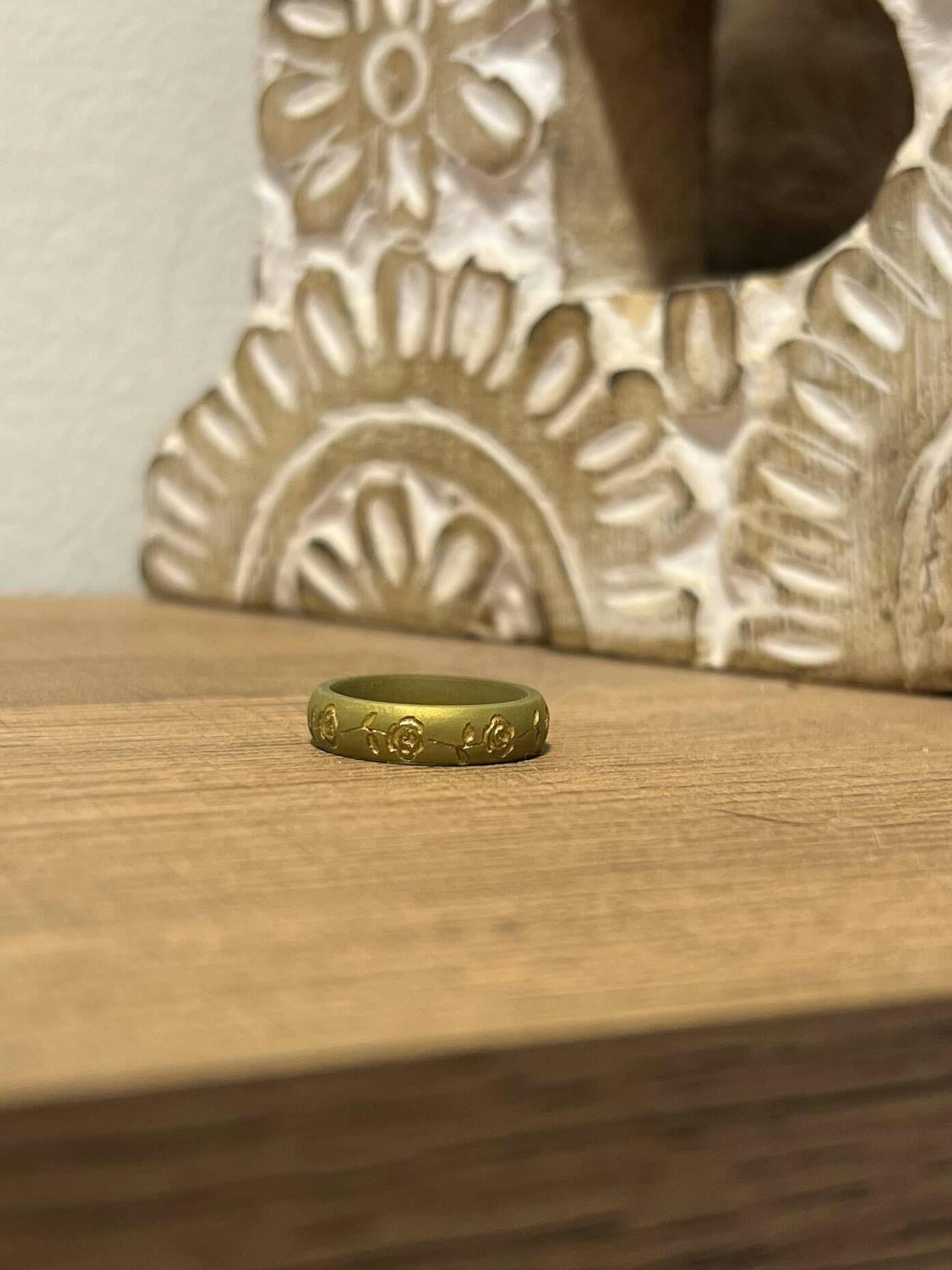 Gold Poppy Silicone Ring, August Birth Flower on Arc 4mm