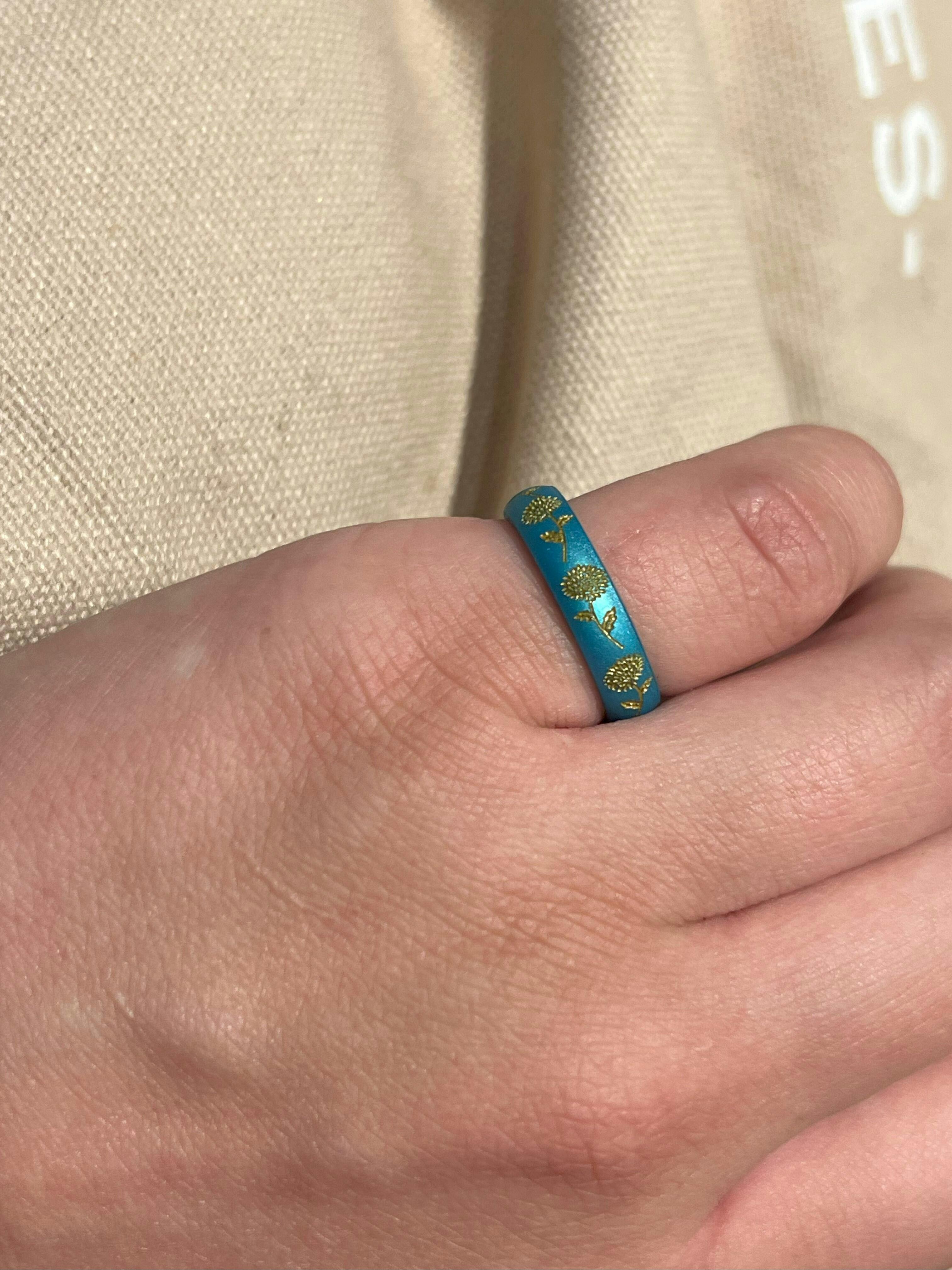 Crafted from 100% hypoallergenic, food-grade silicone, our rings are safe for all skin types. Even our metallic pigments are metal-free. Colors are infused throughout the ring - not just coated - so they stay vibrant, wear after wear.