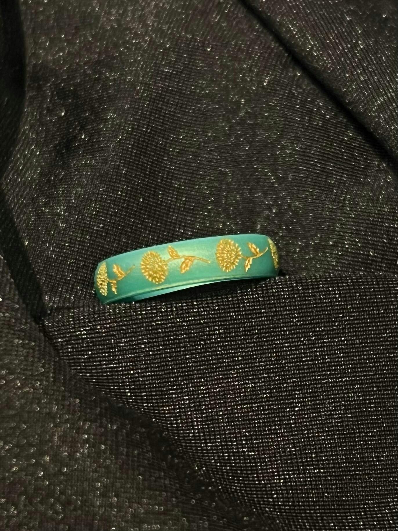 Gold Chrysanthemum Silicone Ring, November Birth Flower on Arc 4mm