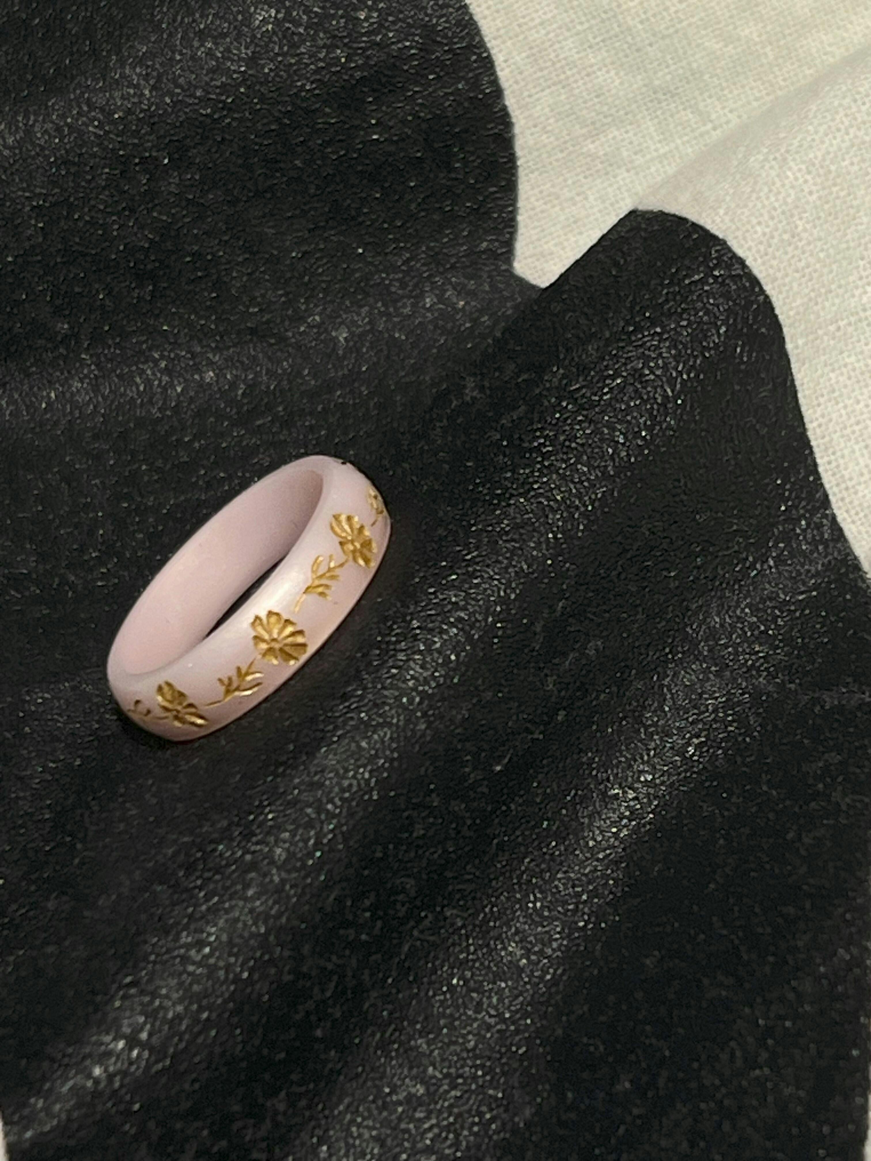 Gold Cosmos Silicone Ring, October Birth Flower on Arc 4mm