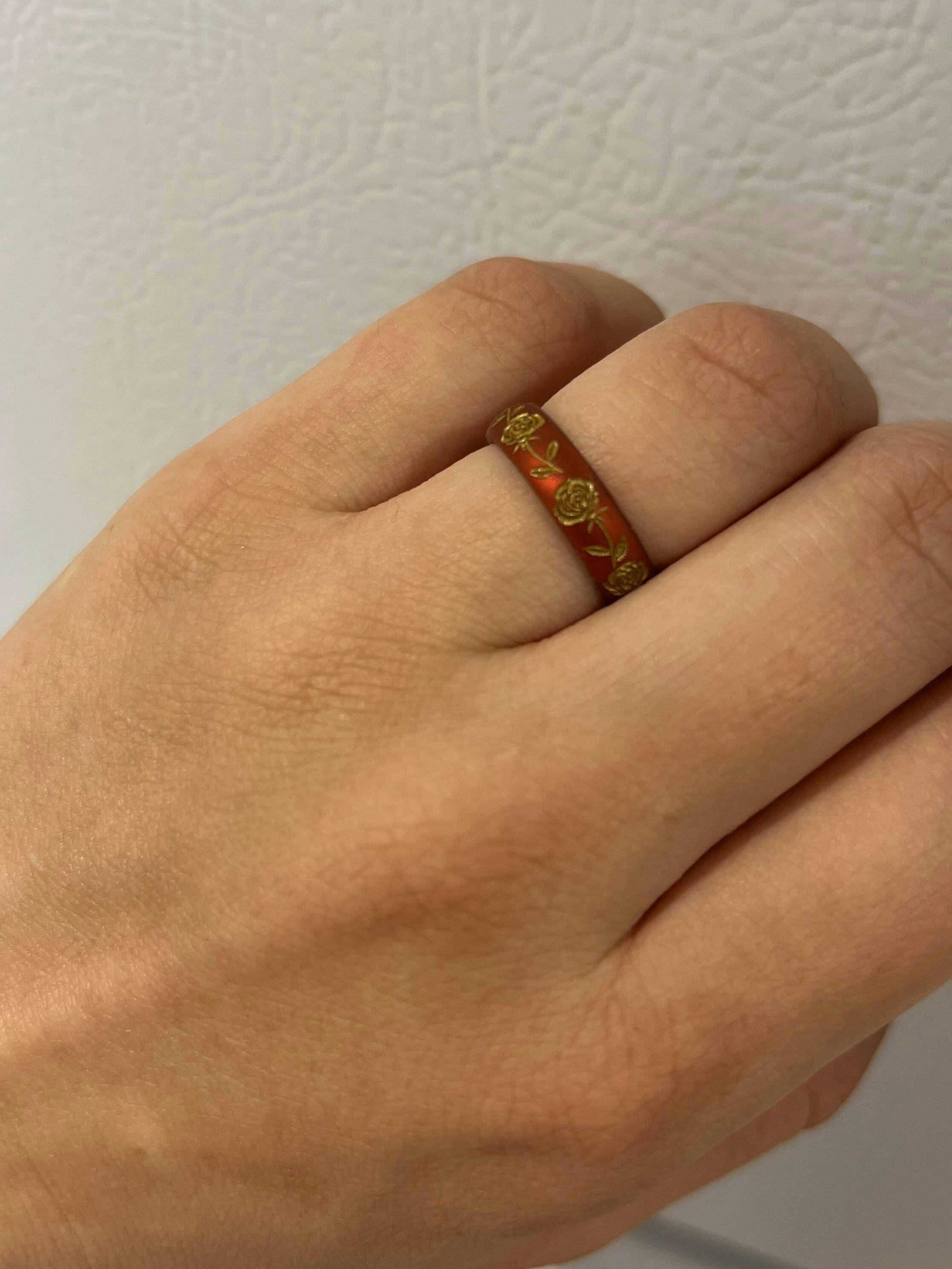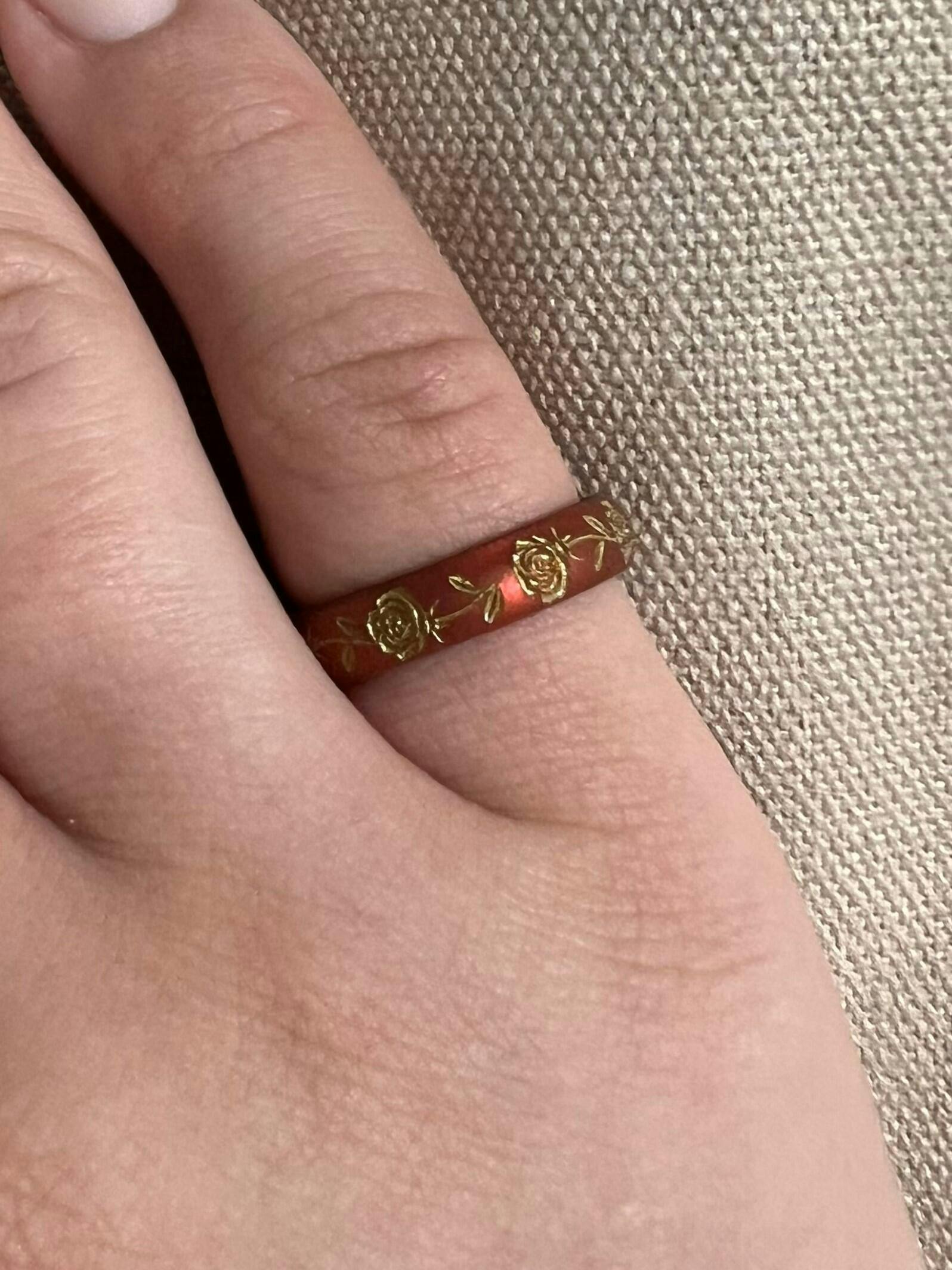 Gold Rose Silicone Ring, June Birth Flower on Arc 4mm