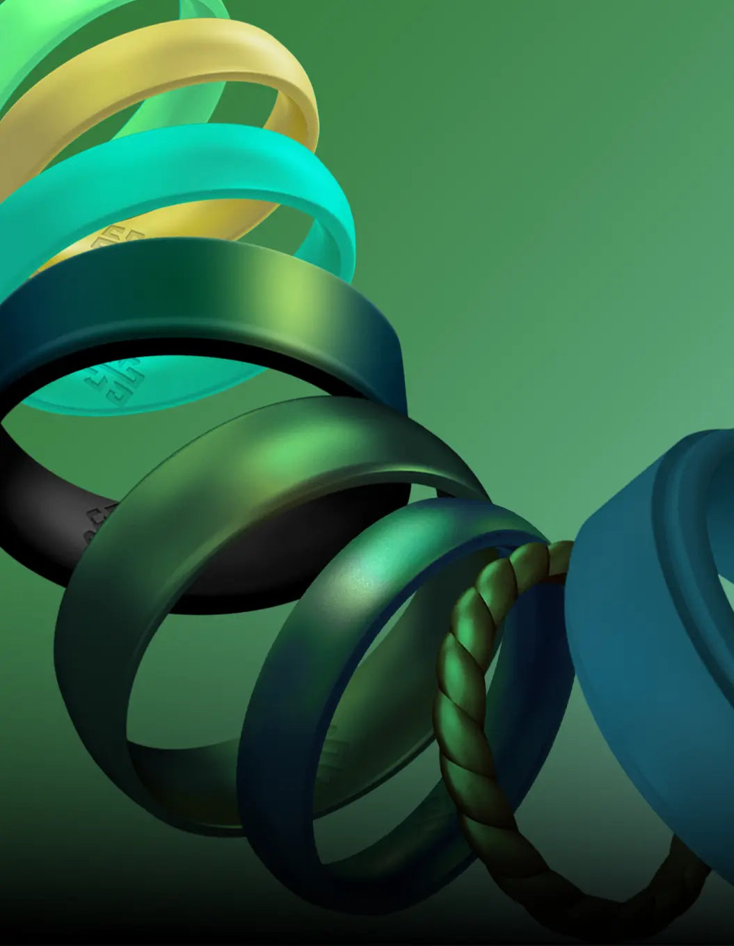 Discover the largest and most vibrant color selection of silicone rings, made with long-lasting, vivid, and metal-free pigments.