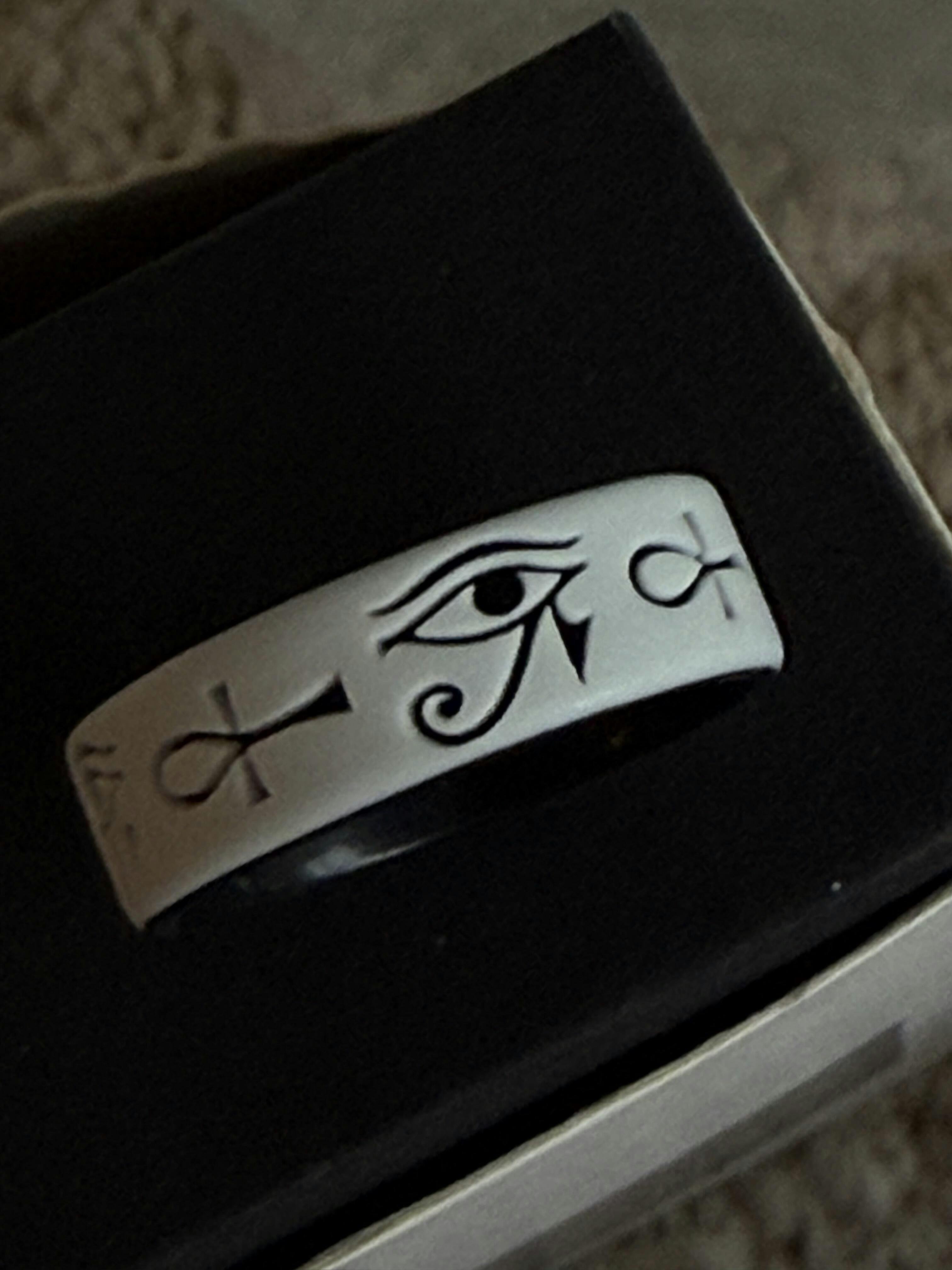 As you slip this ring onto your finger, feel the ancient wisdom and protection of Egypt wrap around you. The Eye of Horus and the Ankh are symbols that transcend time, offering a sanctuary of strength and vitality amidst life's challenges. The Eye of Horus, a guardian of protection, and the Ankh, a beacon of eternal life, stand as silent companions, reminding you that true power lies in the harmony of body and spirit. This ring is not just an accessory; it is a talisman of calm, wisdom, and purpose, guiding and protecting you through the journey of life.